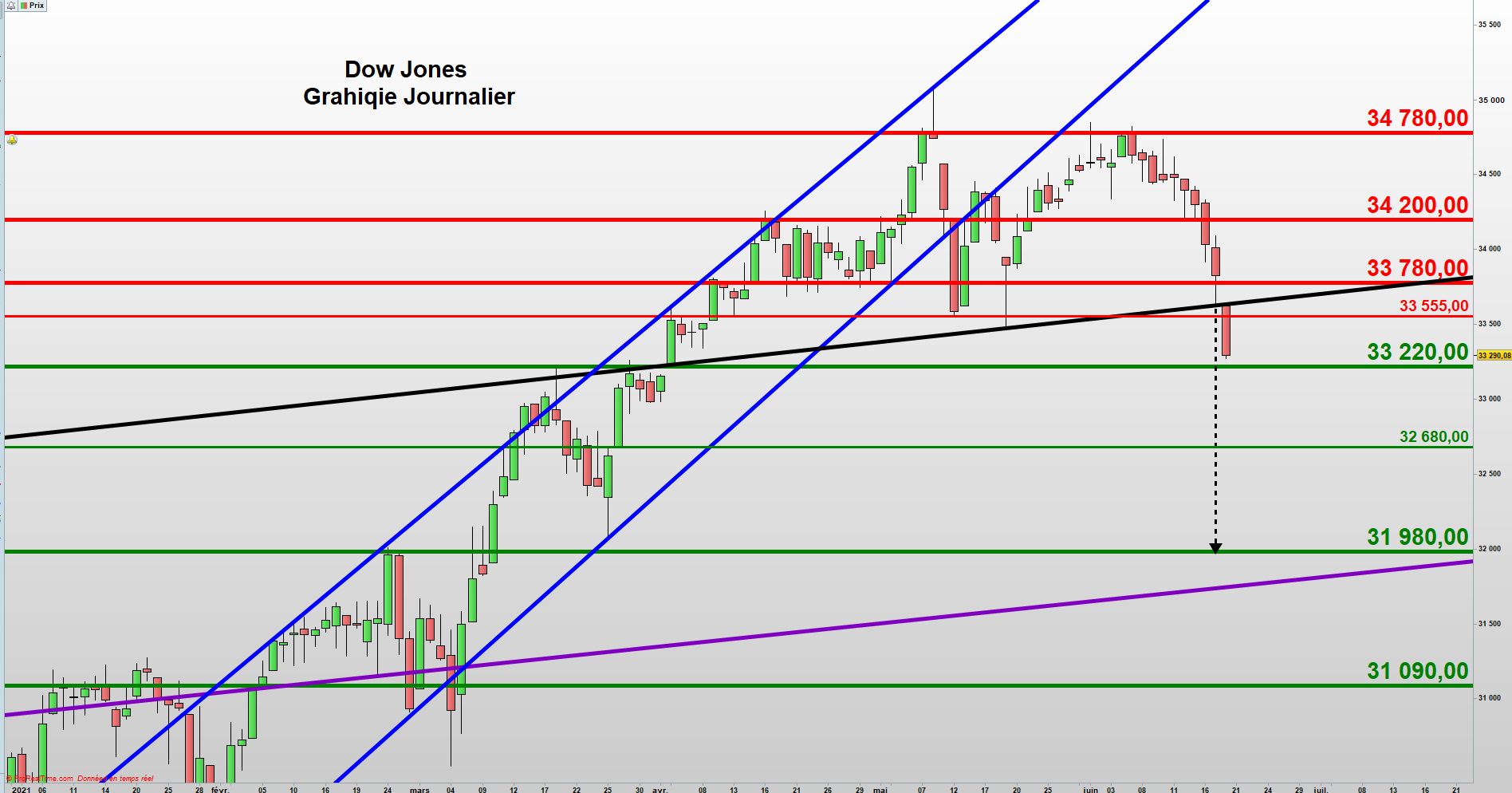 Reste que, la dynamique haussière de court terme a été violemment stoppée, par la rupture du canal haussier, actif depuis fin mai.