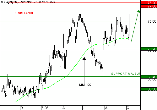 Les analyses proposées sont suivies et nous publierons des mises à jour lorsque nous penserons qu'il faudra revendre le produit mis en avant. Le suivi devient caduc si le produit est désactivé. Les objectifs et seuils d'invalidation sont indiqués à titre informatif, ils évoluent en fonction des conditions de marché.