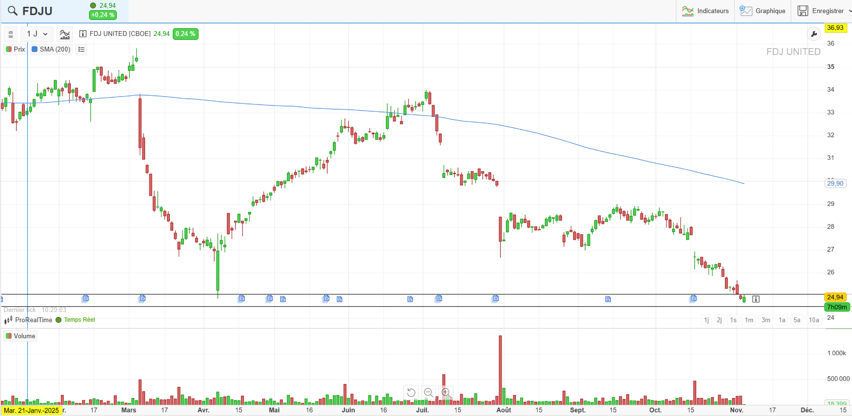 Fourchette : 0.34/0.35. sur un cours de FDJ à 24.96€