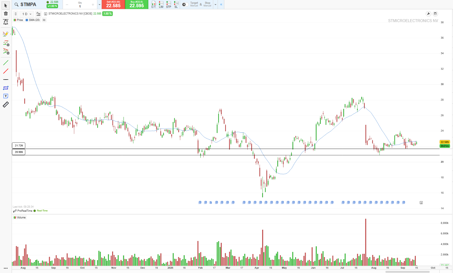 Fourchette : 3.39/3.40. sur un cours de STMicroelectronics à 22.66€