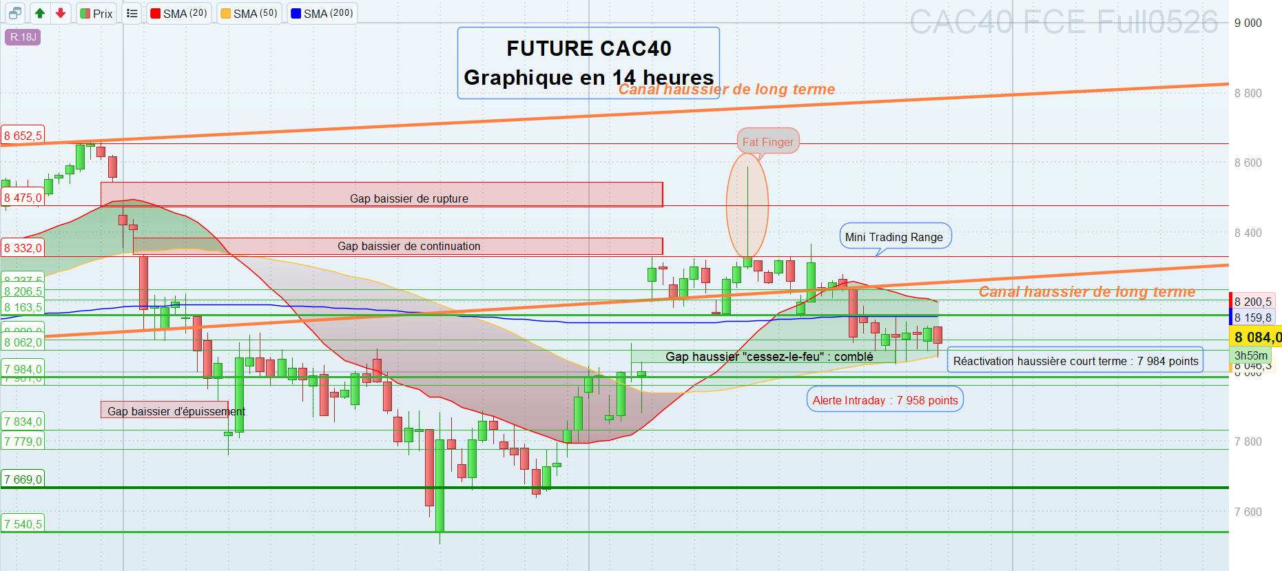 Les supports sont : 8237,5 puis 8201,5 voire 8162,5 et 8090 puis 8062 et 7984 voire 7961 puis 7834, 7719 et 7669 voire 7540,5