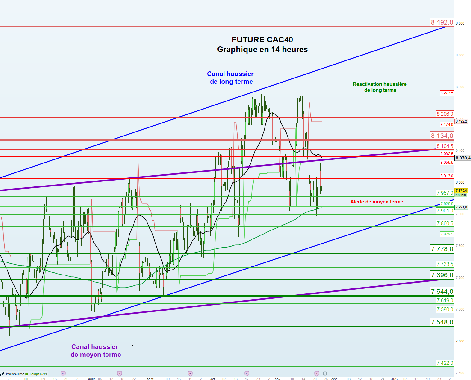 Les supports sont : 7957 puis 7925,5 voire 7901 et 7860,5 puis 7829,5 voire 7778 et 7733,5 puis 7696 voire 7644 et 7619 voire 7590 puis 7548 et 7422 voire 7375 puis 7251,5 et 7048.