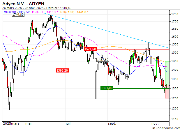 La situation technique milite pour un achat du titre Adyen N.V. sur les cours actuels, par l'intermédiaire du turbo CALL Vontobel NX98V qui cote 2.57 EUR.
