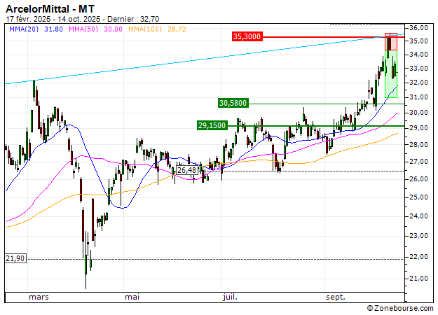 ArcelorMittal : Sortie du turbo PUT Vontobel SW57V (+23.68%) (SW57V)