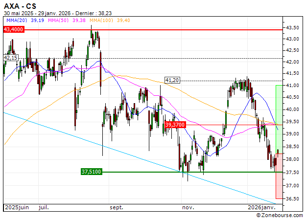 Le titre AXA a subi de lourds dégagements au cours des dernières séances et revient au contact de niveaux importants.
