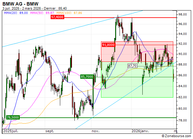 Les analyses réalisées par la société Surperformance, éditrice du site zonebourse.com, n'ont aucune valeur contractuelle et ne constituent en aucun cas une offre de vente ou une sollicitation d'achat de valeurs mobilières ou autre produit financier.